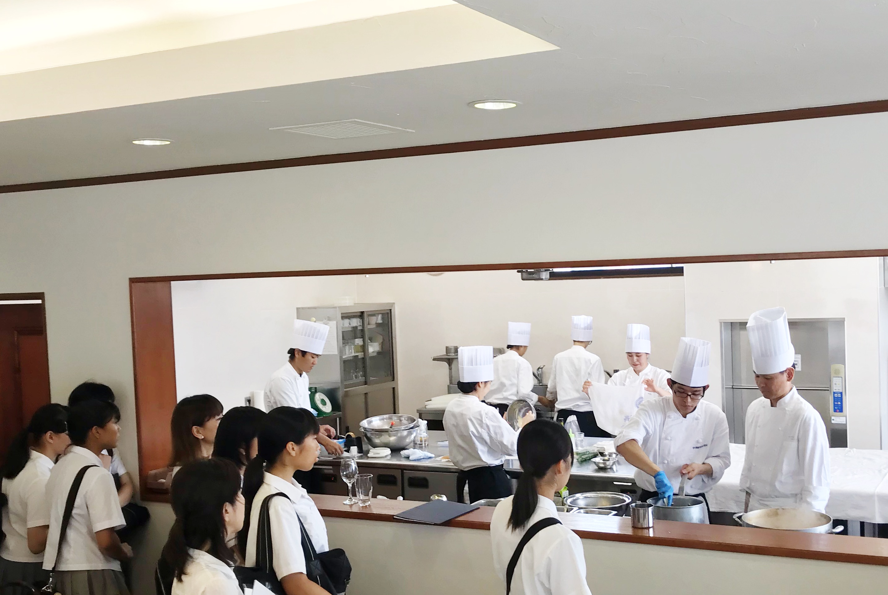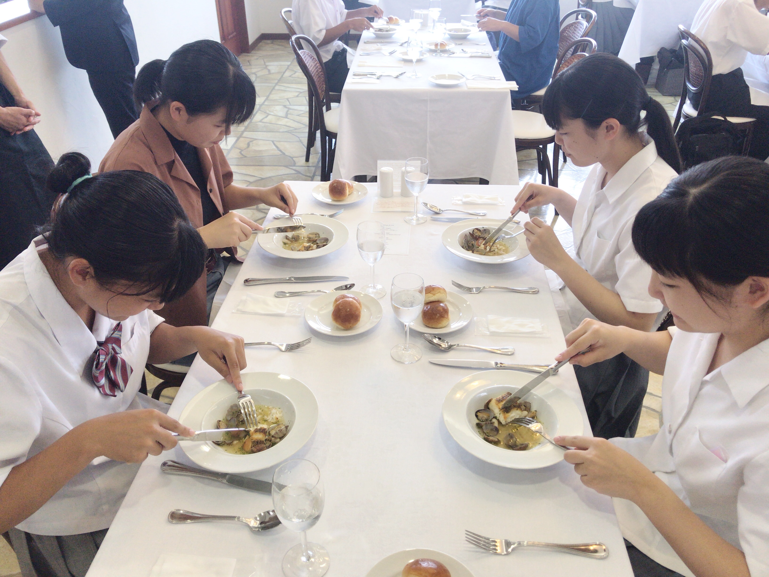 県内初にして唯一のレストラン実習室を持つ当校にて、調理師科とパティシエ科が作るコース料理を召し上がって頂くといった内容でした♪。