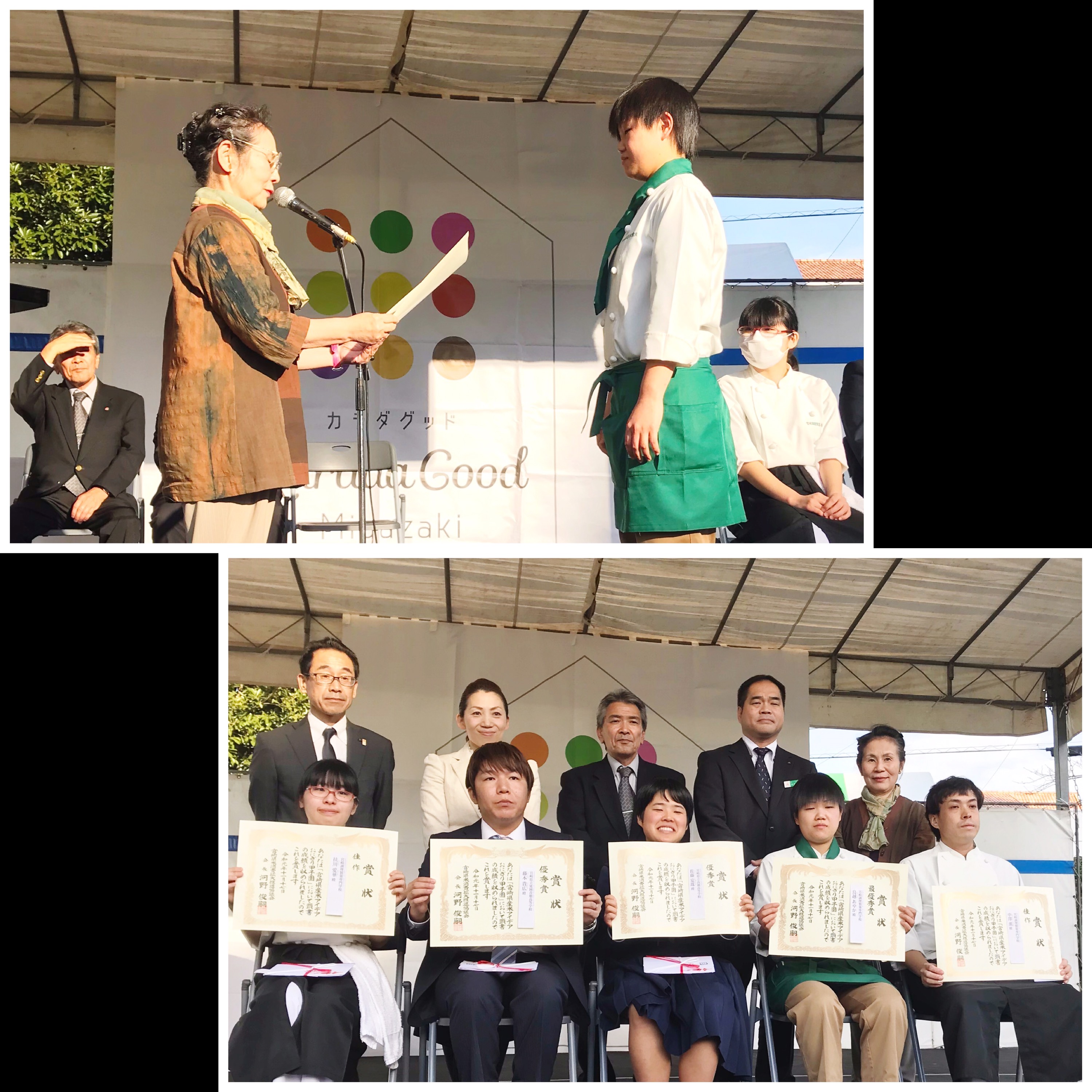 さらに、同イベント内で行われた「宮崎県産米アイディアおにぎり甲子園」の最終公開審査に、本校から3名の学生が出場しました!
