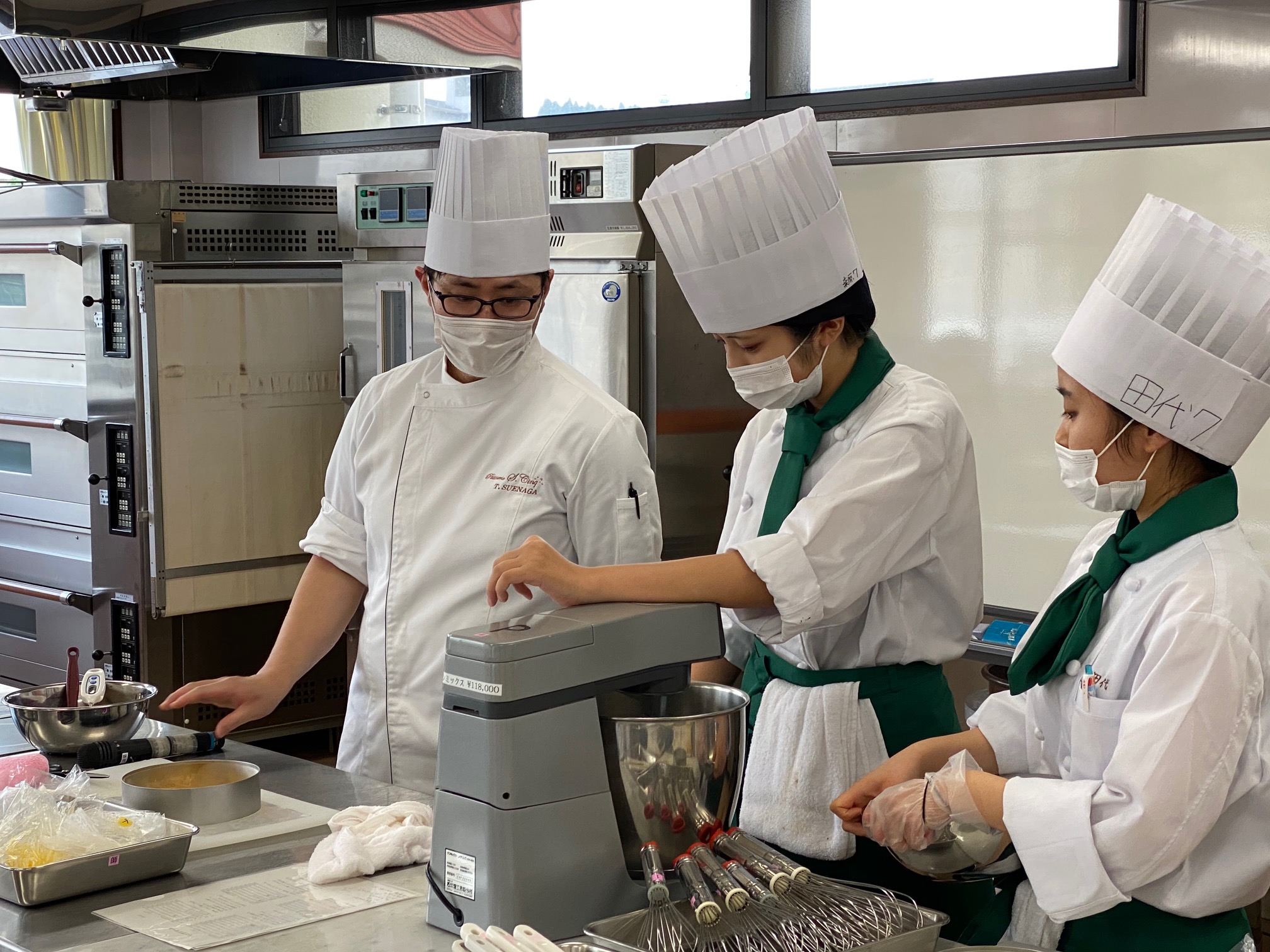 7月8日(水)、当校にて「パティスリーエス・サンク」オーナーパティシエの末永直繁氏によるスイーツ研修会が開かれました。