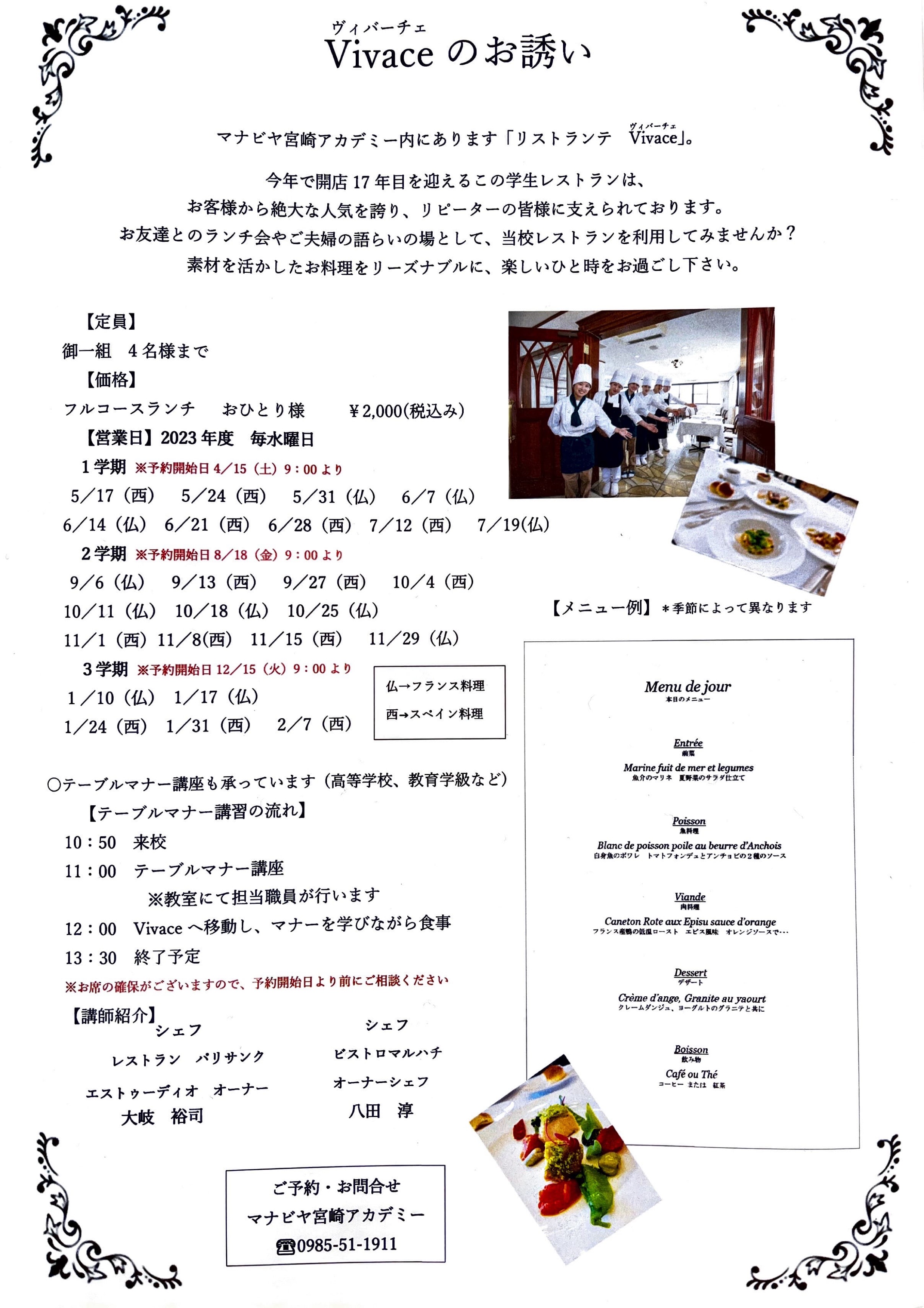 学生レストラン『Vivace(ヴィバーチェ)』5~7月分予約受付のご案内