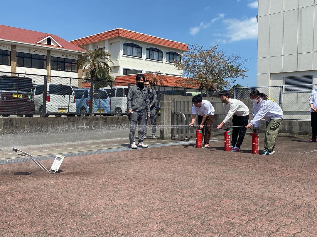 4/10(月)、当校で火災・地震避難訓練を行いました。火を扱うことも多い学校なので、日頃から気を引き締めて、火の取り扱いには十分に気を付けてほしいものです。万が一火災や地震が起こったとしても、慌てずに落ち着いて初期消火を行い、安全な場所へ避難しましょう!今回学んだ事を今後の生活にしっかりと活かしてほしいです(^^)<協力>~火災避難訓練~エレック日栄