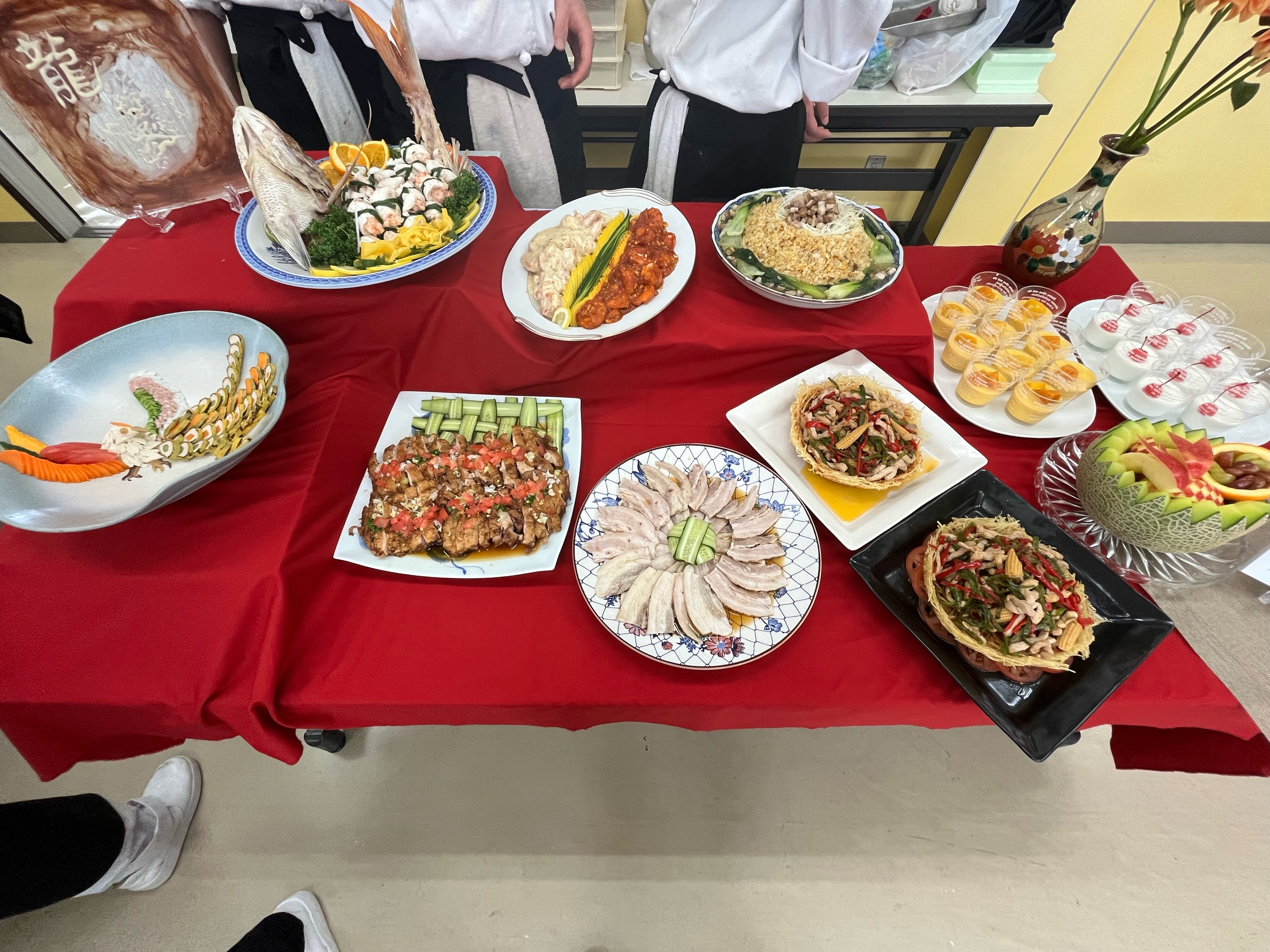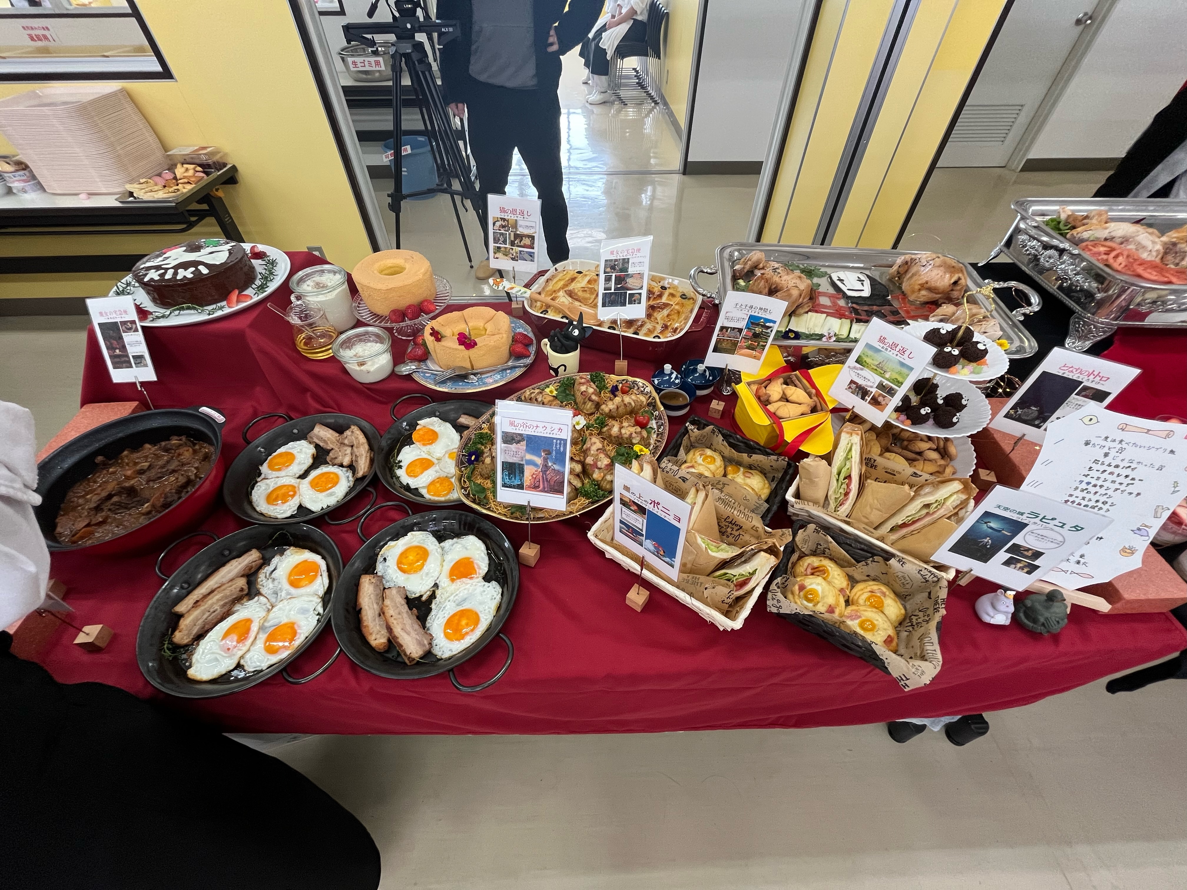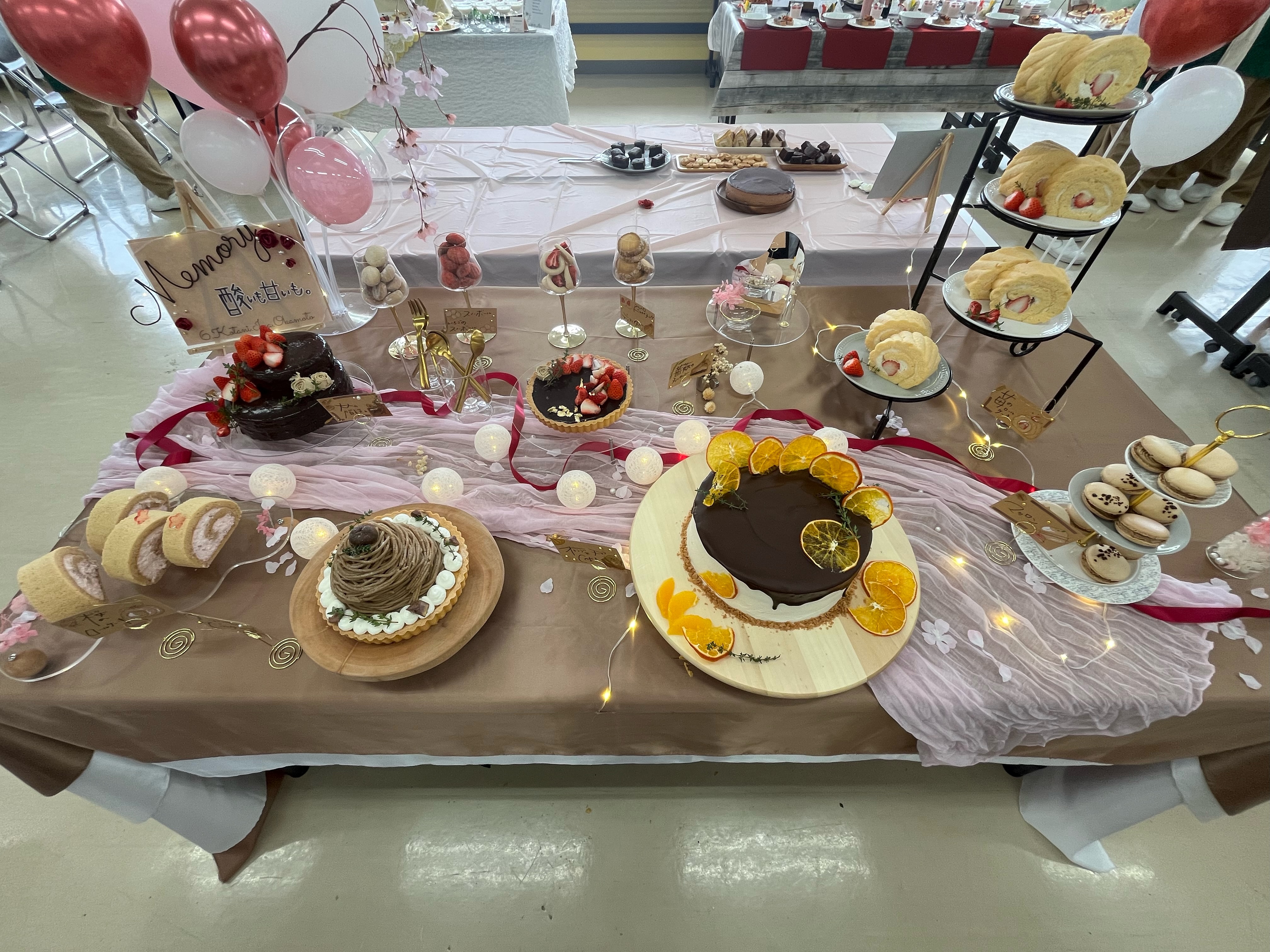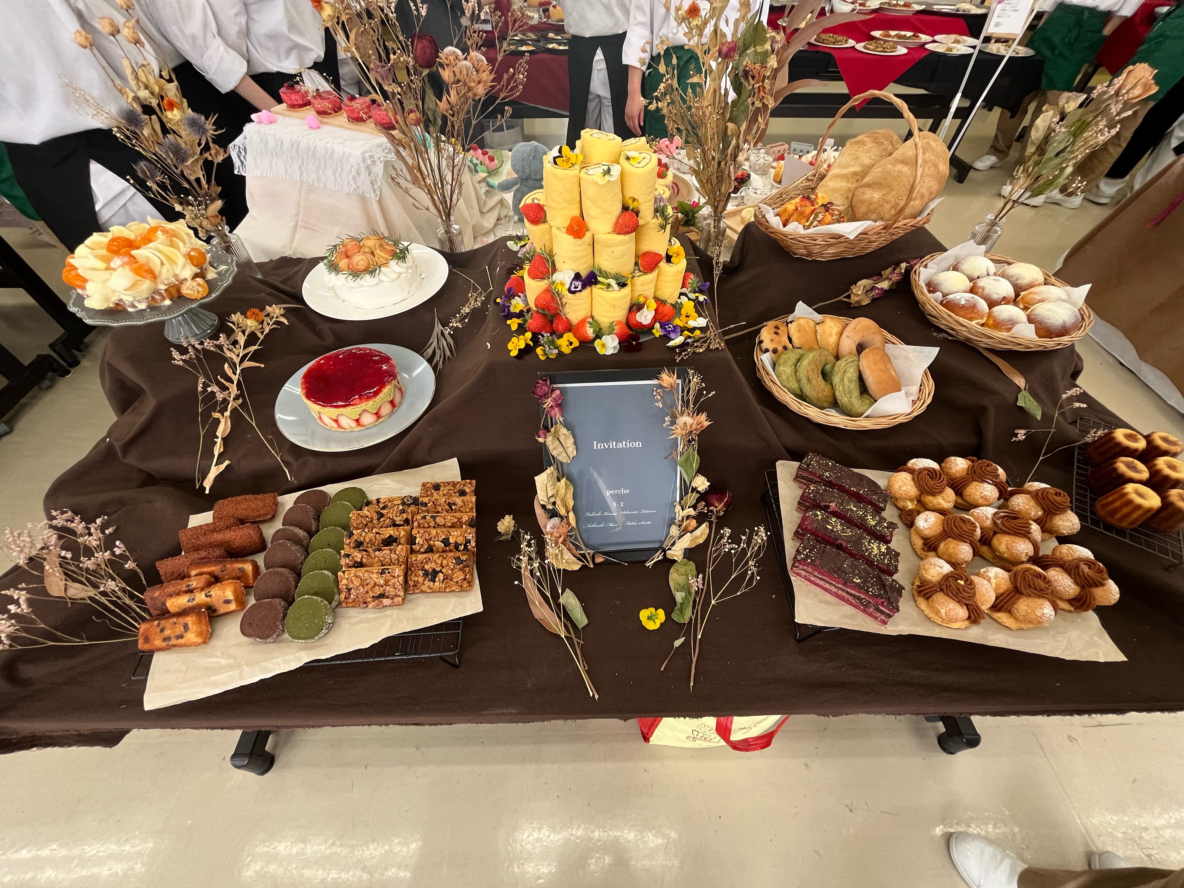 学生が1年間又は2年間の集大成を披露し、会場には華やかな料理やお菓子が並びました。