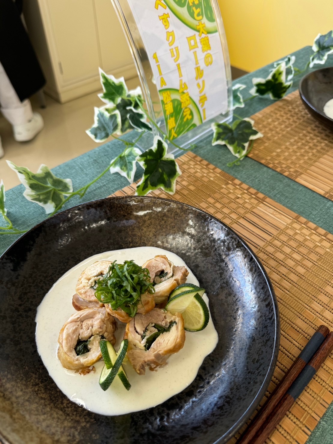 作品名:『鶏肉と大葉のロールソテー へべすクリーム』