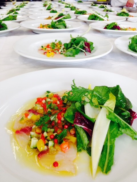 今回、その小林市の商工会議所様のご協力により、貴重なチョウザメをご提供いただき、当校のレストラン「Vivace」にて~キャビアフィッシュのカルパッチョ~と題して提供致しました。