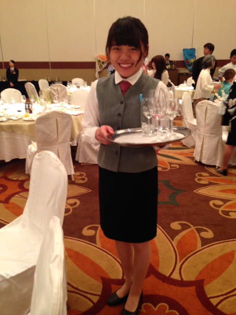 10月10日(月)宮崎観光ホテルにて、宮崎県出身のシェフたちによる『グランシェフの饗宴』(ディナー)が行われ、当校の学生8名がサービススタッフとしてアルバイトをさせていただきました。一流シェフの料理を見て、大人数のお客様方へサービスをして、現場の雰囲気を味わえたということは、学生達にとって大変貴重な経験になったのではないかと思います。