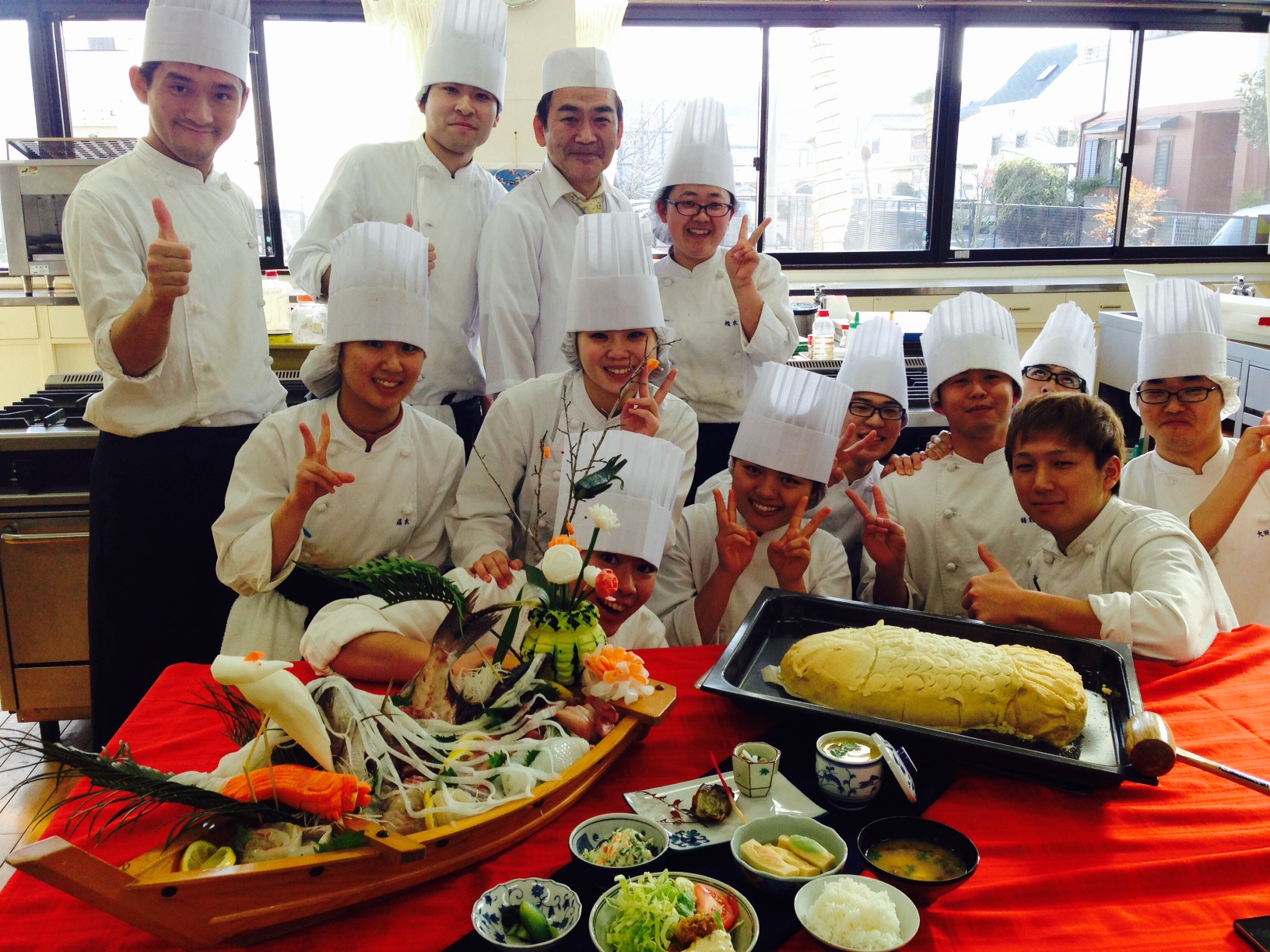 みんな成長したなぁ~!!調理師科2年生の実習が全て終了しました。最後の日本料理実習では、自分達で献立を考え、調理をする実習でした。入学当初は、包丁の握り方もままならなかった学生達がここまで成長できたのも、ご指導いただいた先生方のお陰と、学生達の努力の賜物です。自信がついて、みんないい顔してる~♪