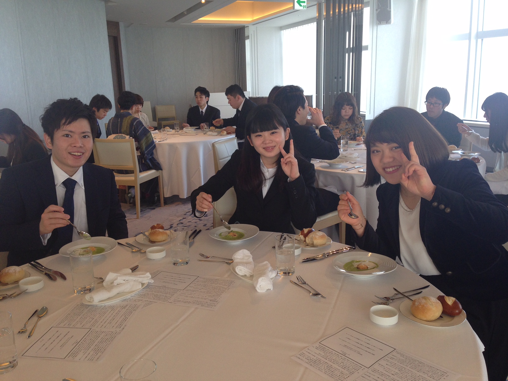 3月3日にシェラトンの42階にて海を眺めながらのテーブルマナー研修。基本的なテーブルマナーを身につけて、スマートな振る舞いができる大人になれたらカッコイイですよね~!!学生達は、良い緊張感の中にも楽しく美味しそうに食事をしていました。みんな、この経験を忘れないでね~!