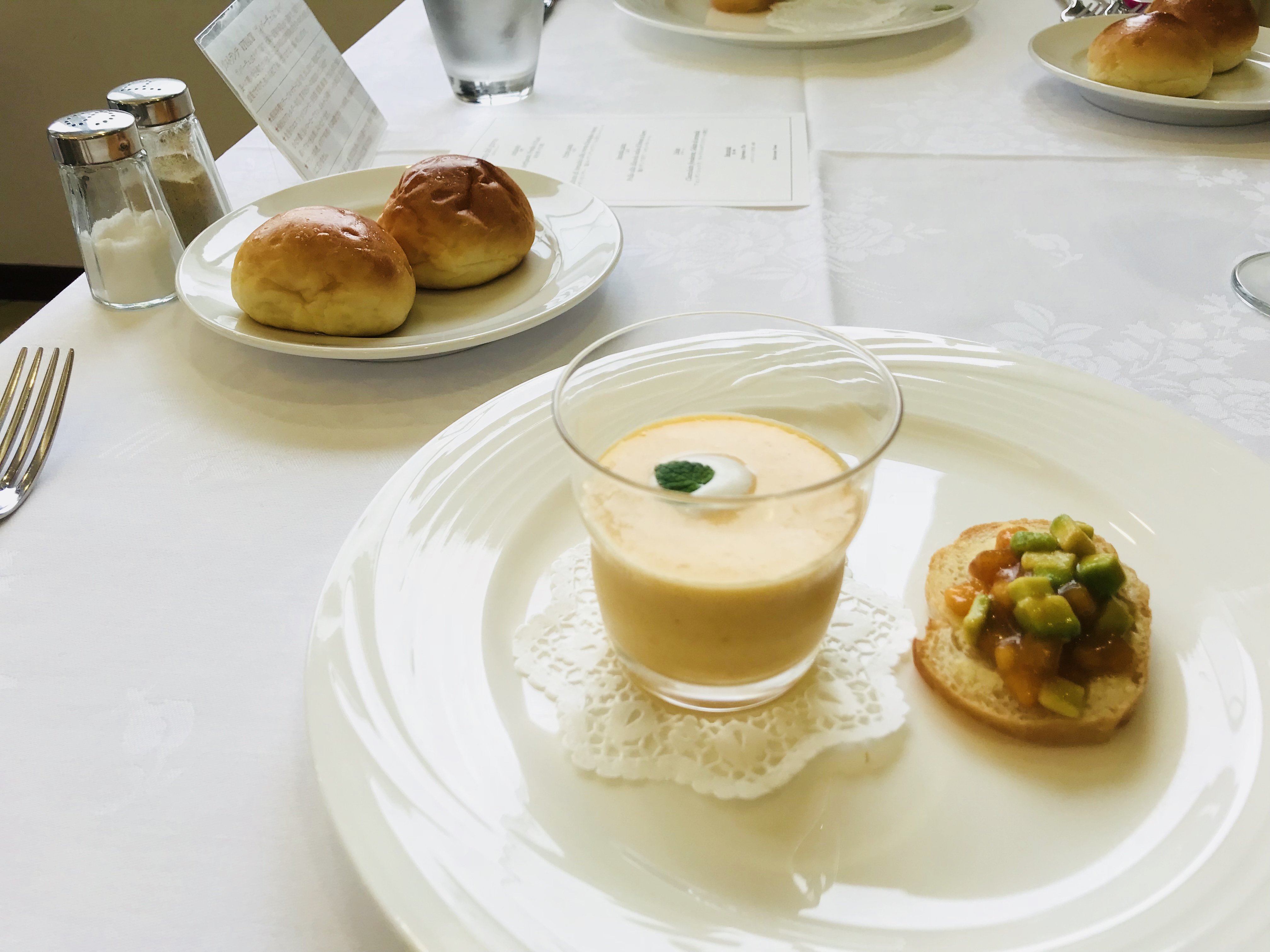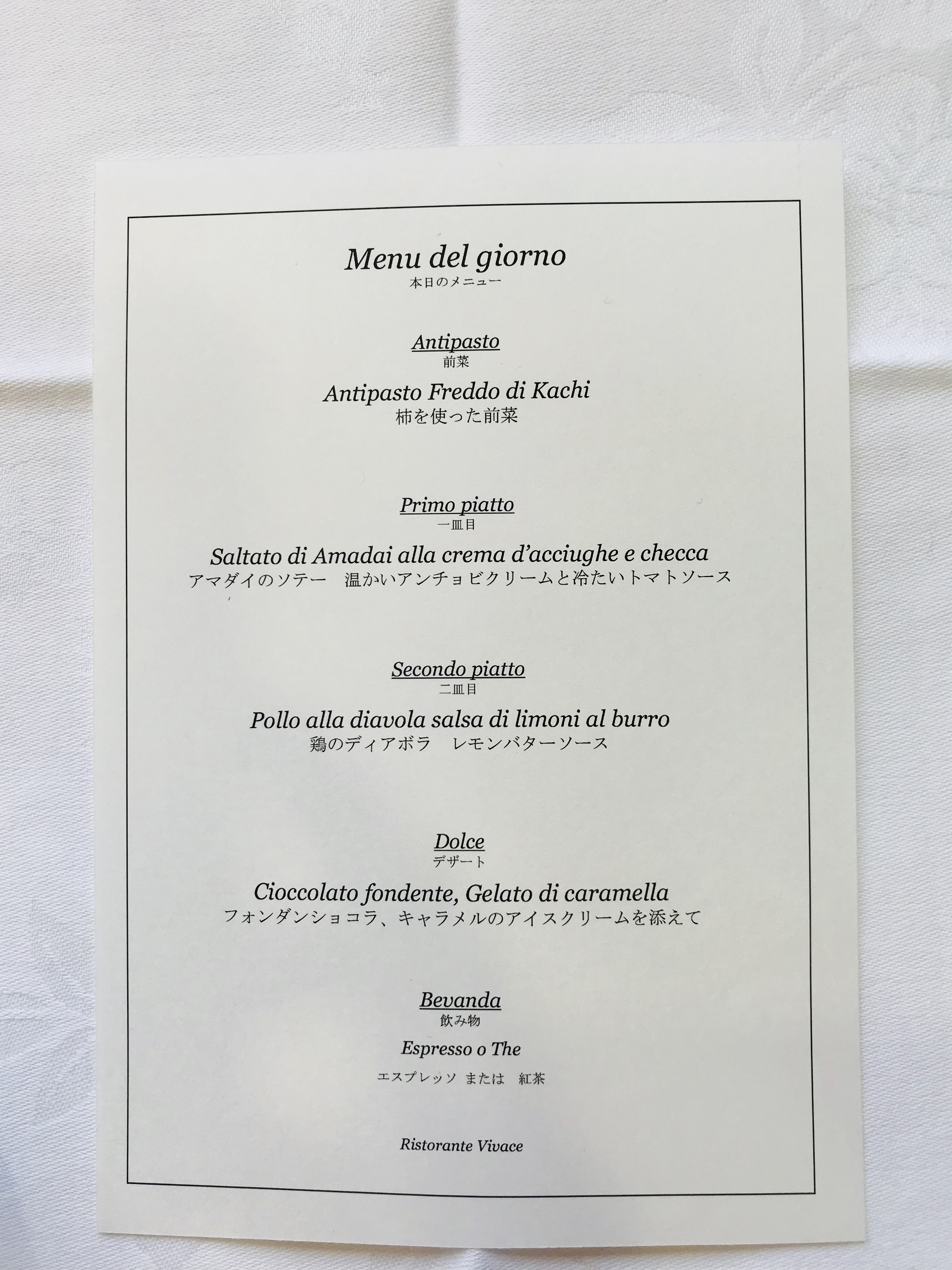 料金はお一人様1,500円です。料理はイタリア料理又はフランス料理のミニフルコースです。
