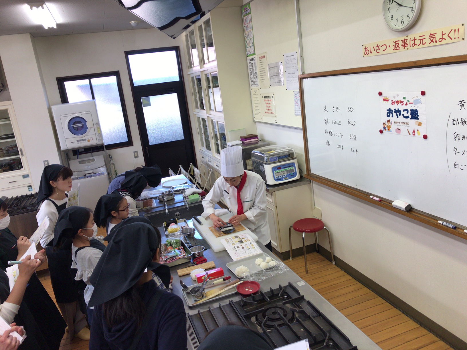 みなさん丁寧に作業していて、巻き寿司を切った時には歓声が上がっておりました(^^)