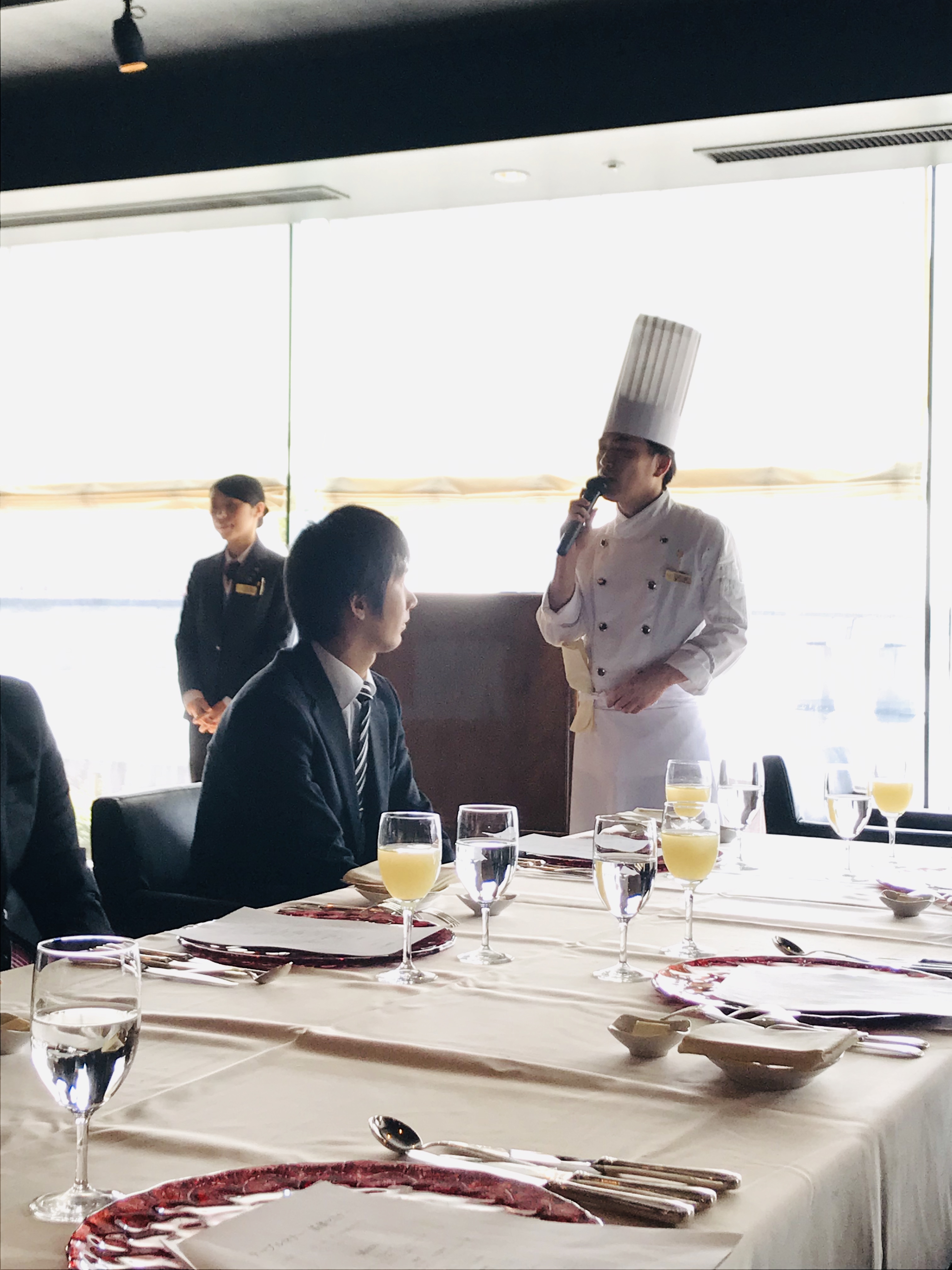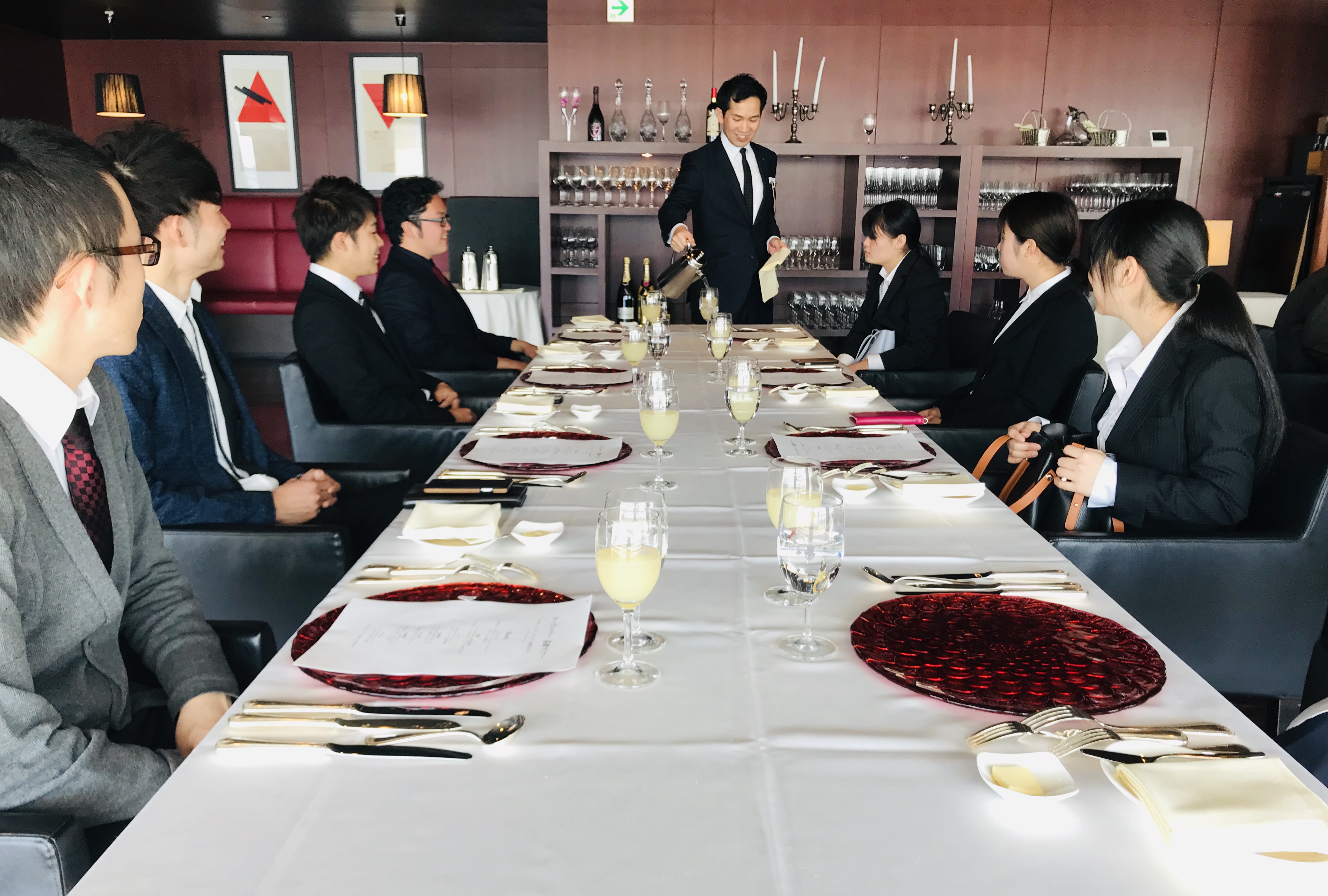 3月5日、宮崎観光ホテルの『ディアマンルージュ』にてテーブルマナー研修を行いました。初めは緊張している様子でしたが、コースが進むにつれて緊張もほぐれ、友人と楽しく会話しながら美味しく食事を頂いているようでした(^^)本格的なコース料理やプロの接客など、多くのことを実際に体験し有意義な研修となったようです。