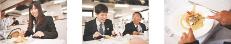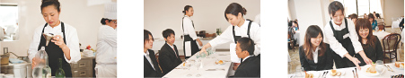 授業で習ったとおりにマナーに従ってナイフとフォークを扱います。お客様となって実際に体験することも大切な勉強の一つ。厨房や接客係を観察するのもよい学習になります。
